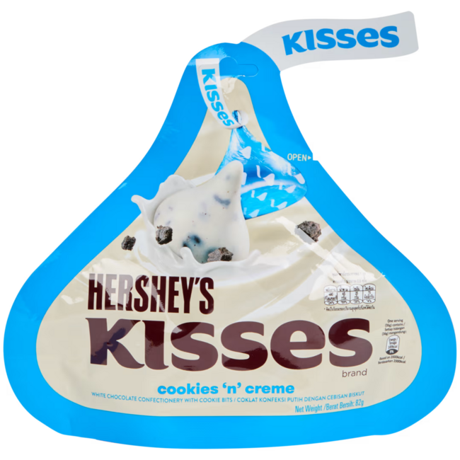 Hershey’s Cookies ’N’ Cream Kisses are a playful twist on a classic favorite. Each bite-sized Kiss is made with smooth white crème packed with crunchy chocolate cookie pieces for the perfect mix of creamy and crunchy. This 82g bag is great for sharing, snacking, or adding a fun cookies-and-cream touch to desserts and candy bowls.